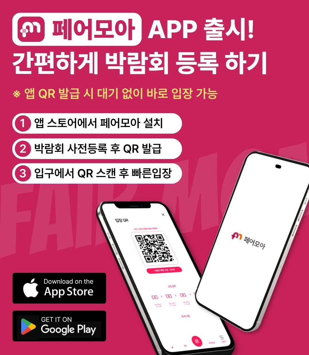페어모아 앱에서 QR을 발급받으신 후 입장이 가능한 점 참고 부탁드립니다.